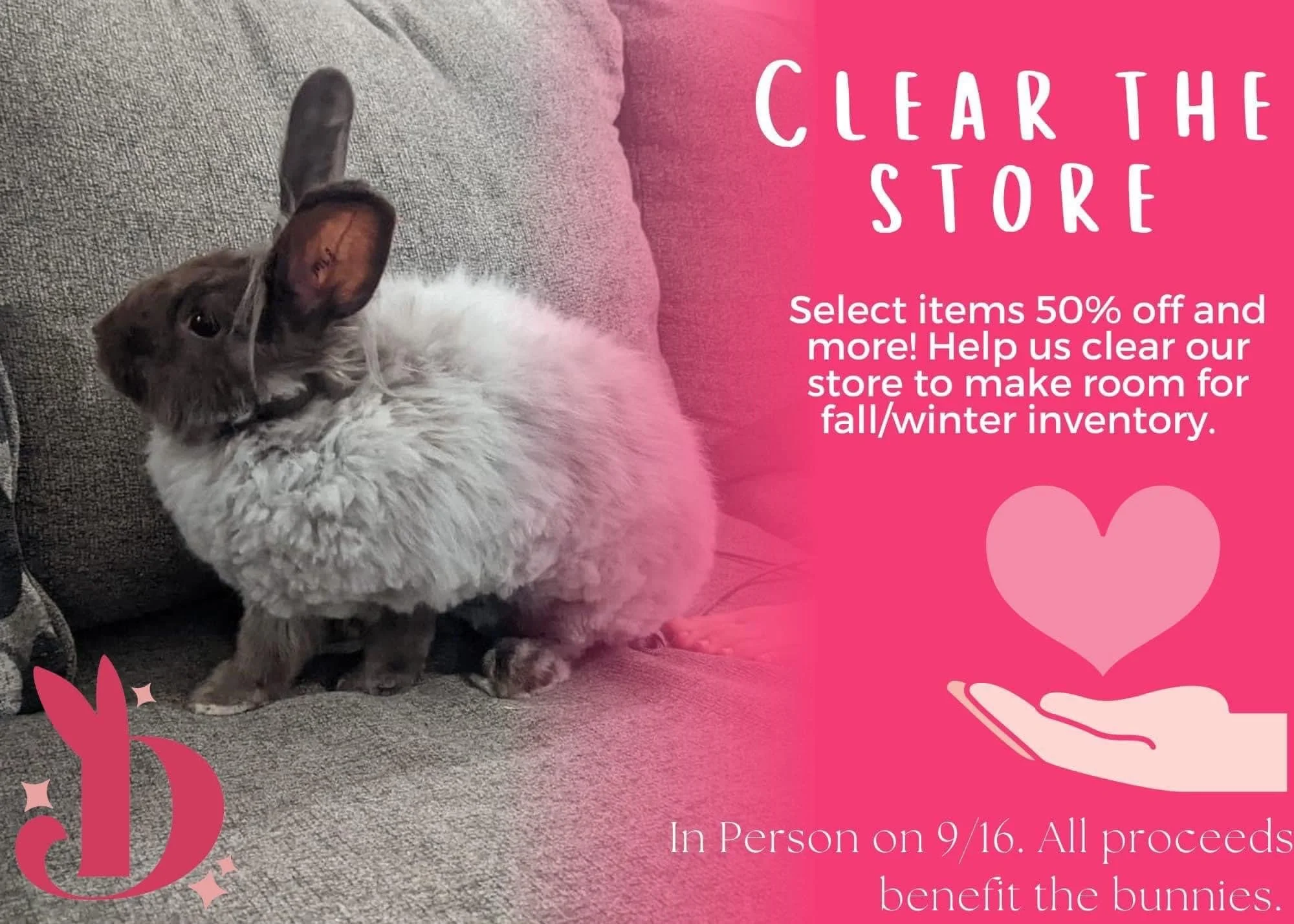 Clear The Store Sale! Saturday, September 16, 2023 10:00 AM 5:00 PM Dolly’s Dream Store (map) Google Calendar ICS Help us clear the store to make way for new seasonal products! All of our bunny decor (and more) will be on super sale. That’s right…50%+ off in person on 9/16.
